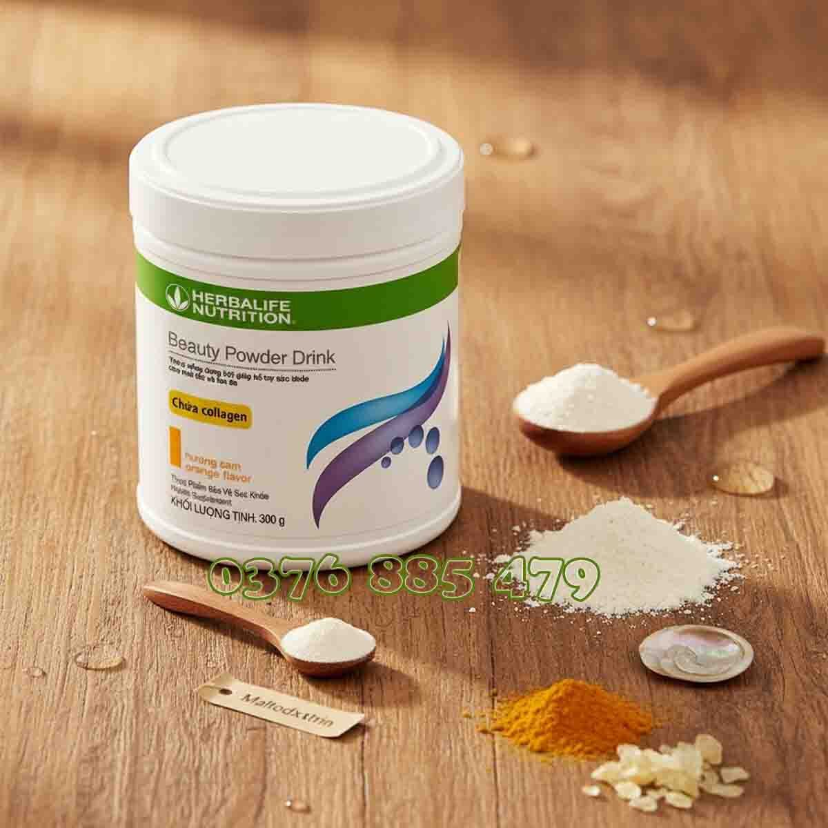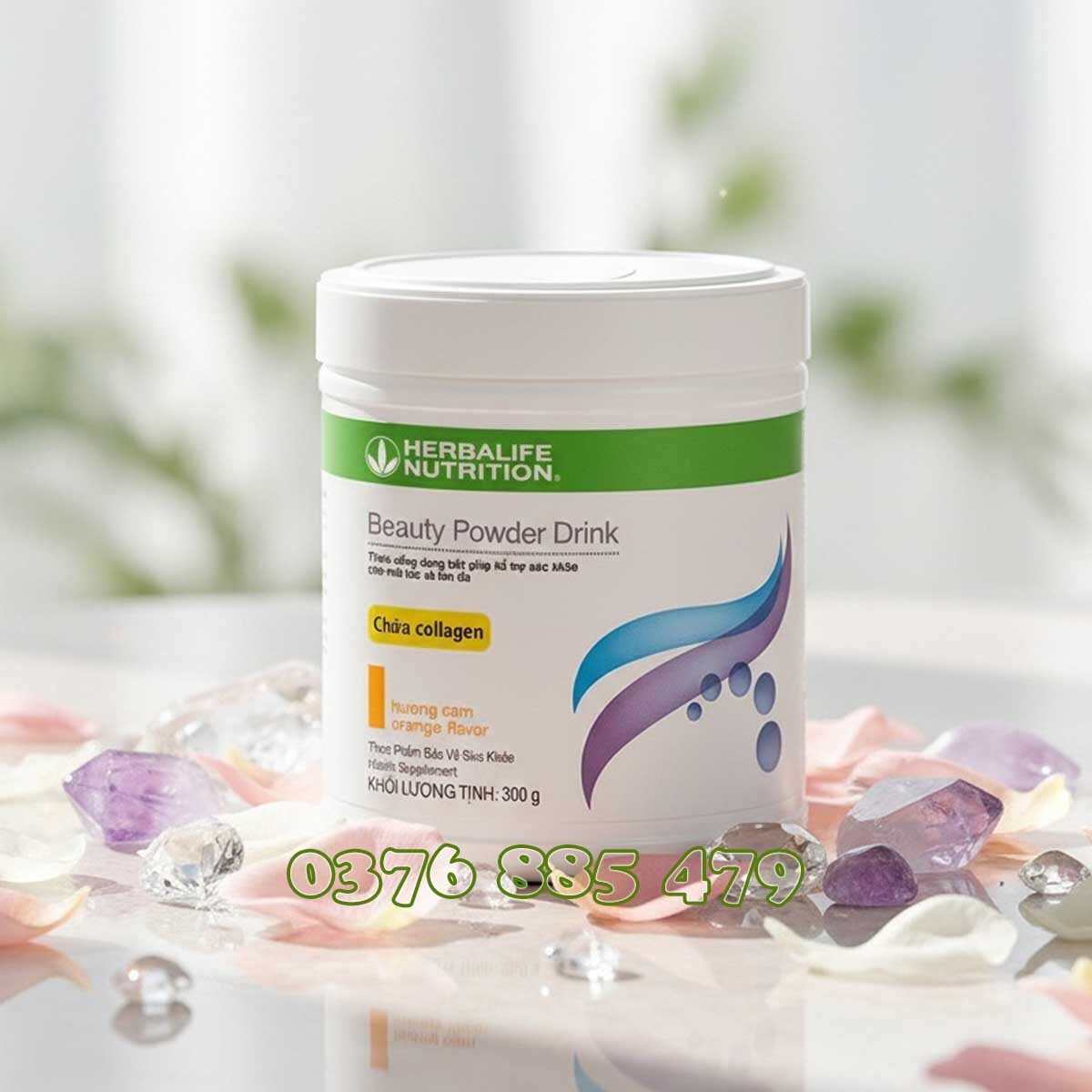 Collagen Herbalife Beauty Powder Drink là thực phẩm bảo vệ sức khỏe dạng bột hương cam chứa collagen thủy phân từ cá (5000mg), Coenzyme Q10 (12mg) và vitamin C (130mg) cùng các dưỡng chất thiết yếu, được thiết kế để hỗ trợ sức khỏe làn da và mái tóc từ bên trong.