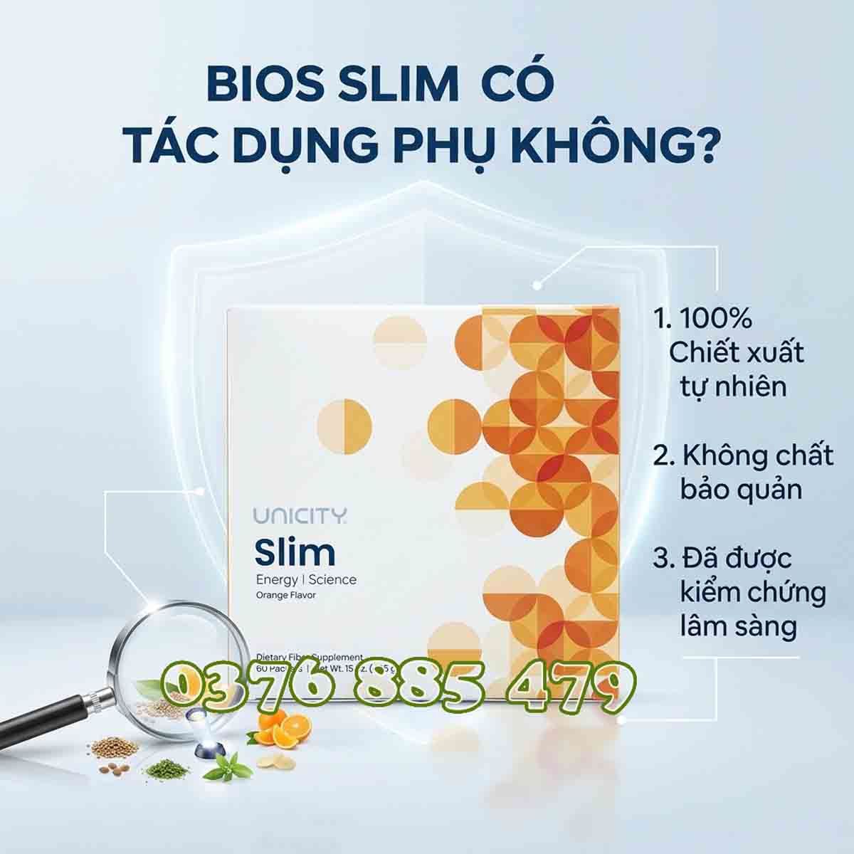 Nhìn chung, thành phần của Bios Life Slim khá “lành” – không chứa chất kích thích mạnh như caffeine liều cao, không có ephedrine hay các hoạt chất thermogenic mạnh thường thấy trong sản phẩm giảm cân tổng hợp. Điều này giải thích vì sao tác dụng phụ nghiêm trọng khá hiếm gặp.
