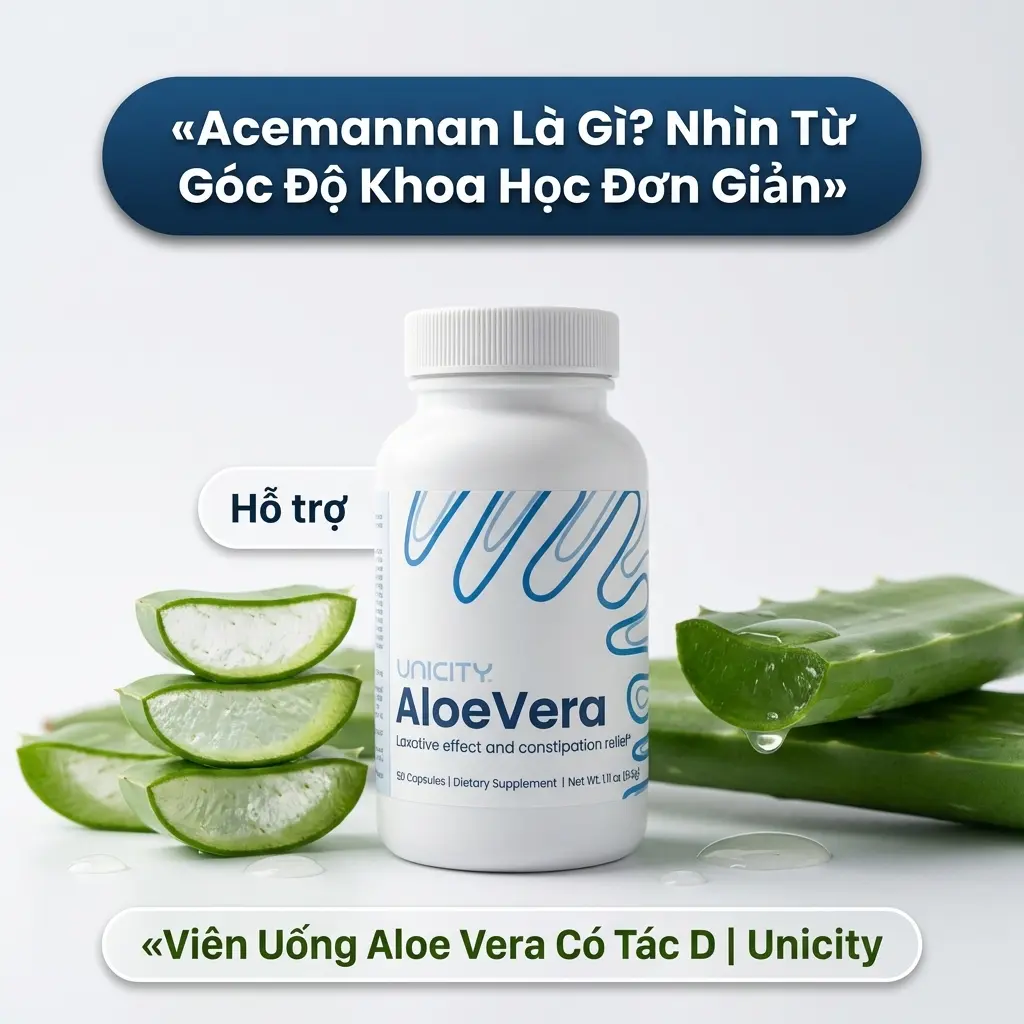 Acemannan là gì – câu hỏi tưởng chừng chỉ dành cho giới nghiên cứu, nhưng gần đây lại xuất hiện ngày càng nhiều trong các cuộc trò chuyện về sức khỏe đường ruột và thải độc tự nhiên. Đây là một hợp chất thuộc nhóm polysaccharide, ẩn sâu trong lớp gel trong suốt của cây lô hội – và chính nó mới là lý do khiến lô hội được xem trọng trong y học cổ truyền lẫn nghiên cứu hiện đại. Không phải màu xanh của lá, không phải mùi thơm đặc trưng – mà là lớp gel chứa acemannan mới thực sự đáng chú ý. Bài viết này sẽ giúp làm rõ bản chất, cơ chế và những lợi ích mà hoạt chất này mang lại.